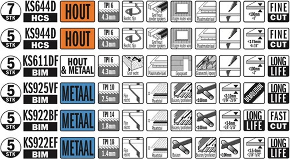 CMT heeft gekozen voor de 6 populairste reciprozaagbladen voor onze 32-delige set