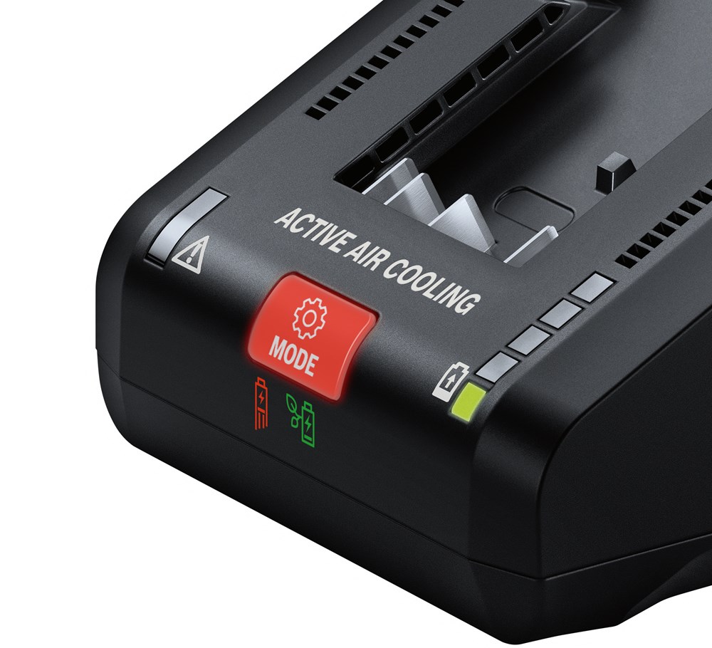 Bij het opladen van uw elektrische accugereedschappen is een langzame oplader frustrerend, omdat u tijd verliest en uw werk wordt onderbroken. Daarom hebben we de GAL 18V-160 Professional ontwikkeld. Deze ultrasnelle 18V-oplader wordt geleverd met standaard en aanvullende oplaadmodi om uw productiviteit te verhogen en tijd te besparen. Dankzij een laadstroom van 16 ampère duurt het slechts 15 minuten om uw ProCORE18V 8.0Ah Professional naar 50% op te laden – dat is vooral praktisch als u nog een paar klussen vóór het einde van de werkdag moet klaren. Krijg een volle lading tijdens uw pauze – de hoogste snelheid laadt uw accu in slechts 44 minuten helemaal op. Deze oplader beschikt over een interface met een modusknop voor het inschakelen van extra oplaadmodi: PowerBoost en Long Life. PowerBoost-modus is uw keuze voor een volledige lading op de hoogste oplaadsnelheid. Kies de Long Life-modus als u behoedzamer naar 80% wilt opladen met een langere levensduur van de accu. Zelfs als uw accu tijdens het werk opwarmt, kunt u deze nog opladen: Active Air Cooling-technologie in de oplader beschikt over 2 interne ventilators voor het koelen van de accu's en om ze tijdens het opladen koel te houden. Deze ultrasnelle oplader is compatibel met het Bosch Professional 18V System en met AMPShare, de samenwerking van meerdere merken accu's.