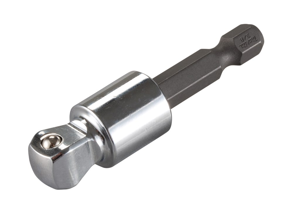 Contacteer onsBithouders, adapters en overige gerelateerde accessoires. De serie Impact Premier is ontworpen voor gebruik met slagschroevendraaiers. Dit assortiment is gemaakt van sterk staal en heeft nauwkeurig bewerkte punten voor een uitstekende grip van de schroefkop en een flexibel middenstuk om te voorkomen dat de punt breekt. Hierdoor hebben de bits een veel langere levensduur in vergelijking met standaardbits. De kleurcodering van de tips maakt het gemakkelijk om ze snel te herkennen. Met behulp van houders en adapters is het mogelijk om anders moeilijk bereikbare schroefplaatsen te bereiken of het verwisselen van schroefbits tijdens het werk te versnellen. Het gebruik van de juiste accessoires maakt het werken prettiger en geeft de accessoires een langere levensduur. Adapter voor kantelbare dop met 3/8" SQ-kop