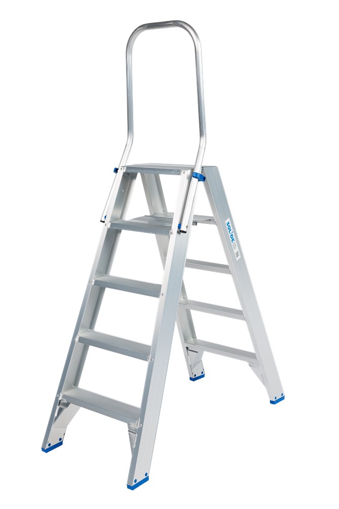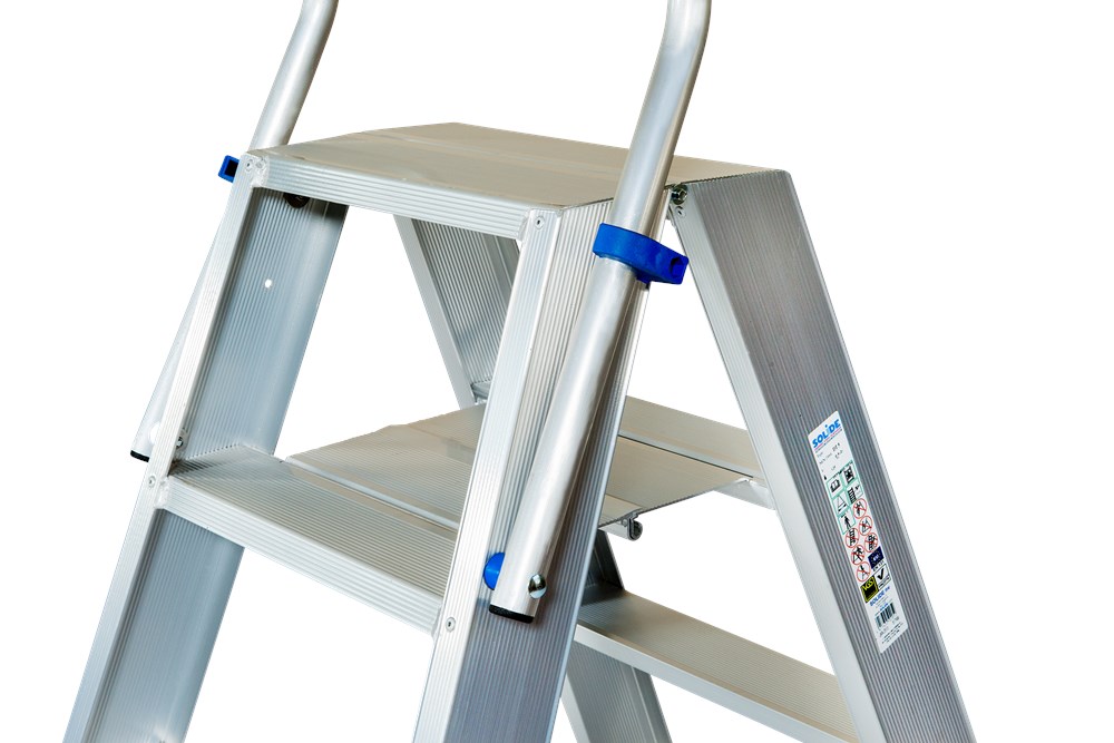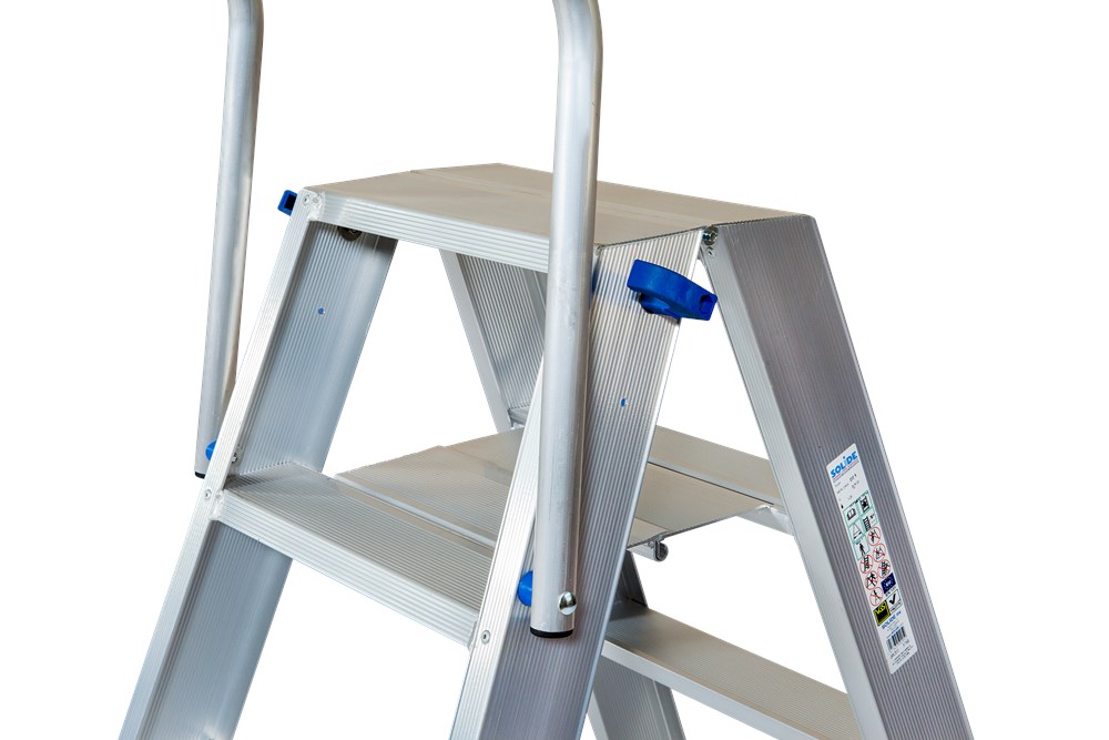 Op de foto ziet u de klapbeugel gemonteerd op een dubbele trapladder met 5 treden (DT05BKL). Dankzij dit slimme ontwerp geniet u van extra steun, maximale veiligheid en een duurzame oplossing die jarenlang meegaat.