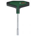De Bosch bit-schroevendraaier T-greep is een klasse apart voor gecontroleerd en krachtig schroeven op moeilijk bereikbare plaatsen bij het monteren van meubels of het onderhoud van fietsen, motoren en auto's. De ergonomische tweecomponenten handgreep met grote softgripvlakken is ontworpen voor comfort en voor een efficiënte krachtoverdracht bij schroeftoepassingen met een hoog koppel. Een robuuste 100 mm schacht van koolstofstaal die lang meegaat, maakt het werken op krappe, moeilijk bereikbare plaatsen makkelijker. Bits blijven stevig op hun plek dankzij een sterke magnetische bithouder in de schacht.