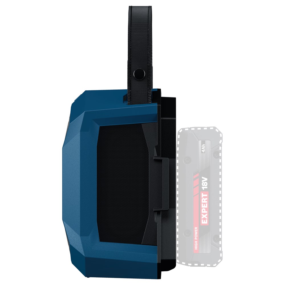 Vul je werkplek met de goede vibes van je favoriete muziek. Onze bouwspeaker GPB 18V-1 C Professional Bluetooth® levert uitstekend geluid via Bluetooth® of Multi-Speaker Sound. Met Multi-Speaker Sound kunnen muziekstreams op meerdere compatibele apparaten via Bluetooth® worden gedeeld en verbonden. Voor extra flexibiliteit maken het compacte ontwerp en de draagriem het gemakkelijk om de luidspreker te vervoeren en op te bergen. Deze Bluetooth-luidspreker is erg gebruiksvriendelijk doordat hij eenvoudig is in te stellen en is uitgerust met een praktische USB-C®-oplaadaansluiting, bijvoorbeeld voor smartphones.