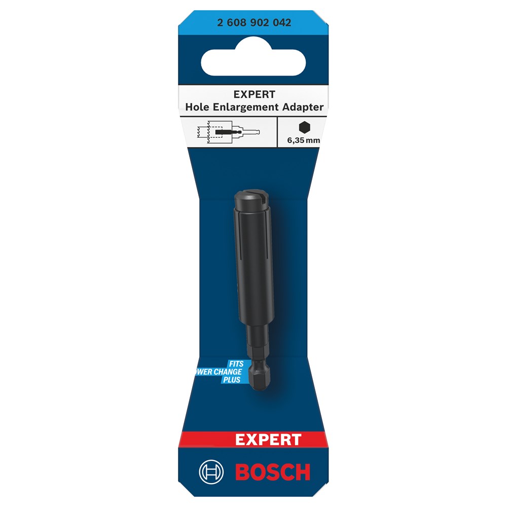 Met de EXPERT Adapter voor gatvergroting kun je de gatzaag met dezelfde diameter als het gat dat je wilt vergroten als centreerboor gebruiken. Klik de adapter eenvoudig in je Bosch Power Change Plus gatzaagadapter en monteer de gatzagen die je nodig hebt voor je klus.