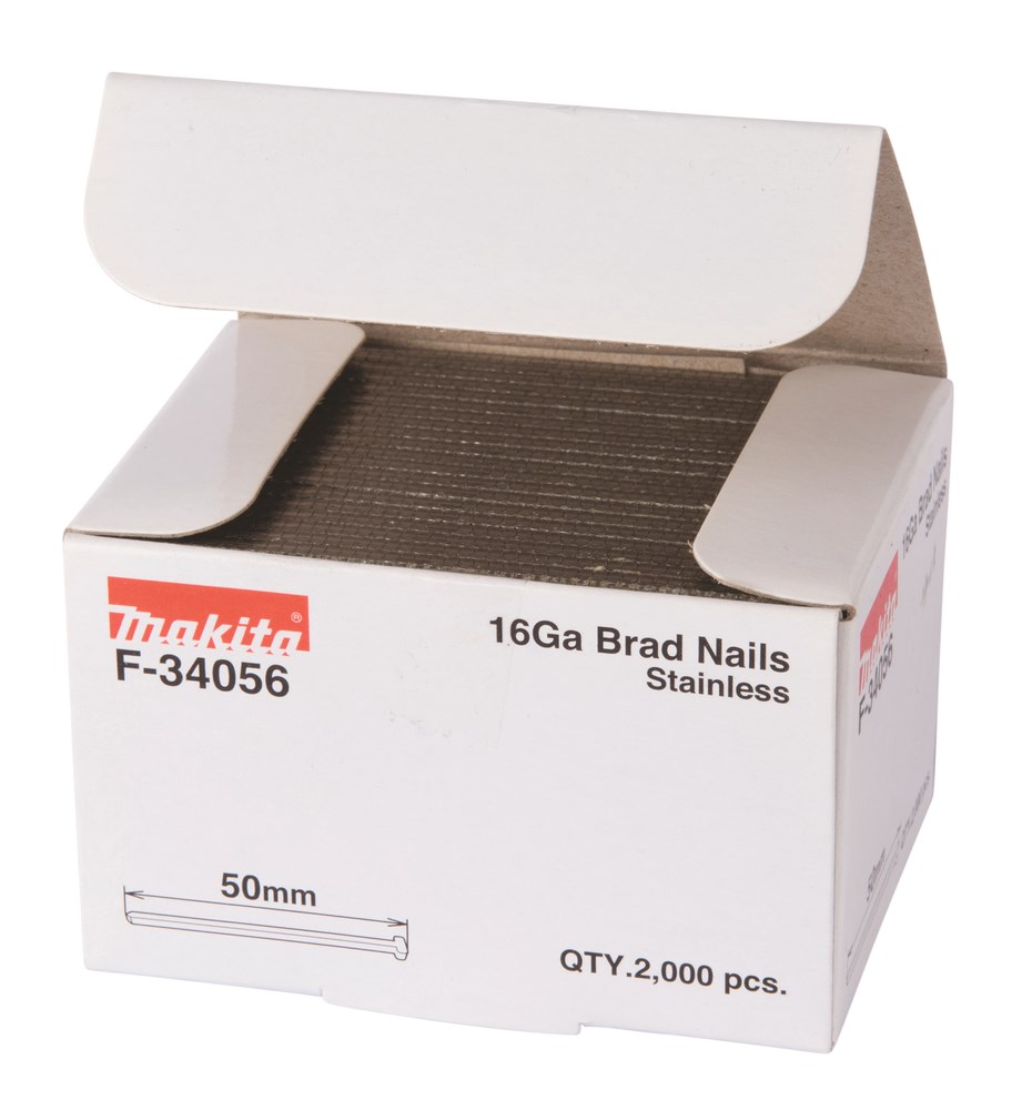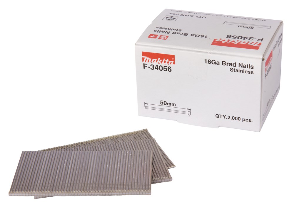 Contacteer onsMakita Artikelnummer: F-34056 BRADS. 1.6 X 50 MM. 1.6 MM. 16GA. ROESTVRIJ STAAL. 2000 STUKS