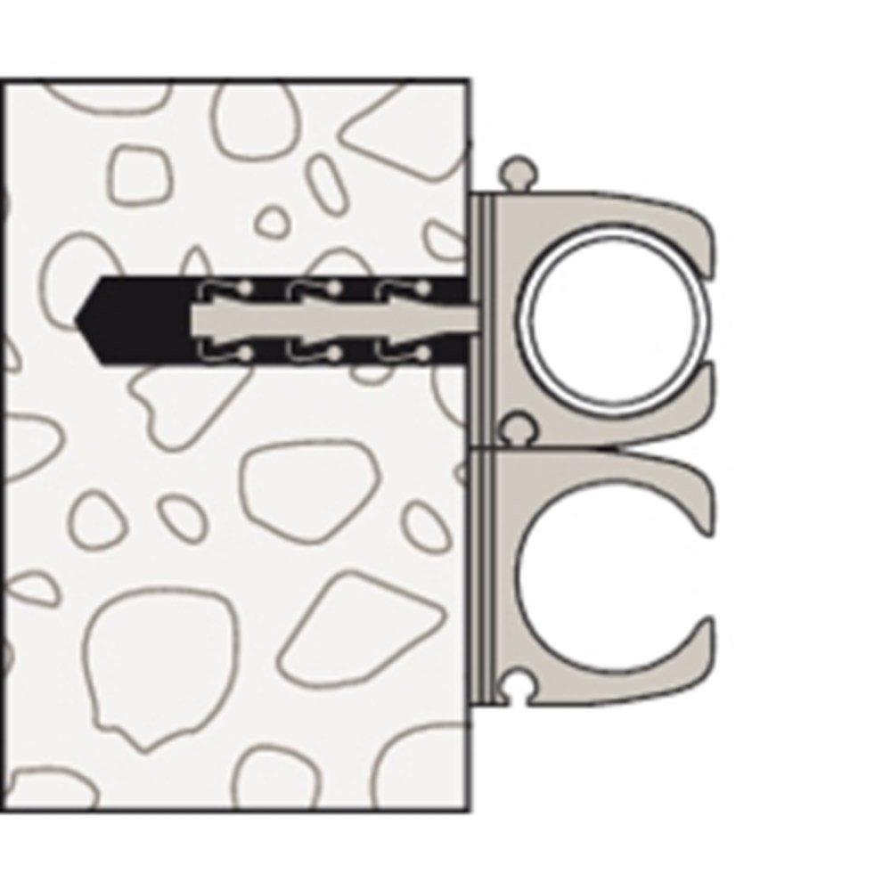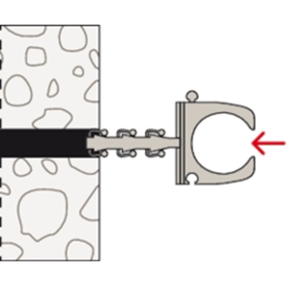 Contacteer onsDe Steckfix plus buisclip SF plus RC IEC is een montagevriendelijke oplossing voor de bevestiging van pijpen. Bij de montage is voor de bevestiging geen schroef nodig, omdat de voorgevormde plug zich onmiddellijk in het bouwmateriaal klemt. Daarna worden de kunststof isolatiebuizen in de buisclip gelegd. Door de voorspanning van de buisclip zitten de buizen stevig vast. De fischer Buisclip SF is ideaal om kunststof isolatiebuizen in beton en massief materiaal te bevestigen – zelfs onder extreme temperaturen van -20°C tot +80°C.