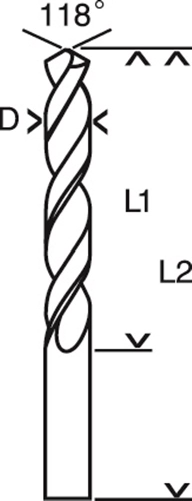 • Conform DIN 1897 geproduceerde boor van type N (groefhoek) met punt van 118 graden en diametertolerantie van h8.