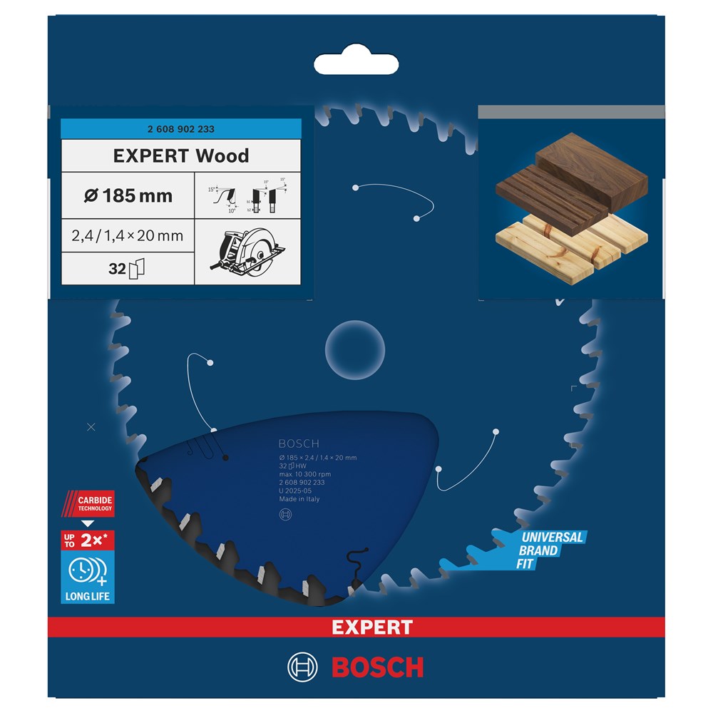 Contacteer onsBosch Artikelnummer: 2608902233 BLAD EXPERT WOOD 185X2.4/1.4X20 T32