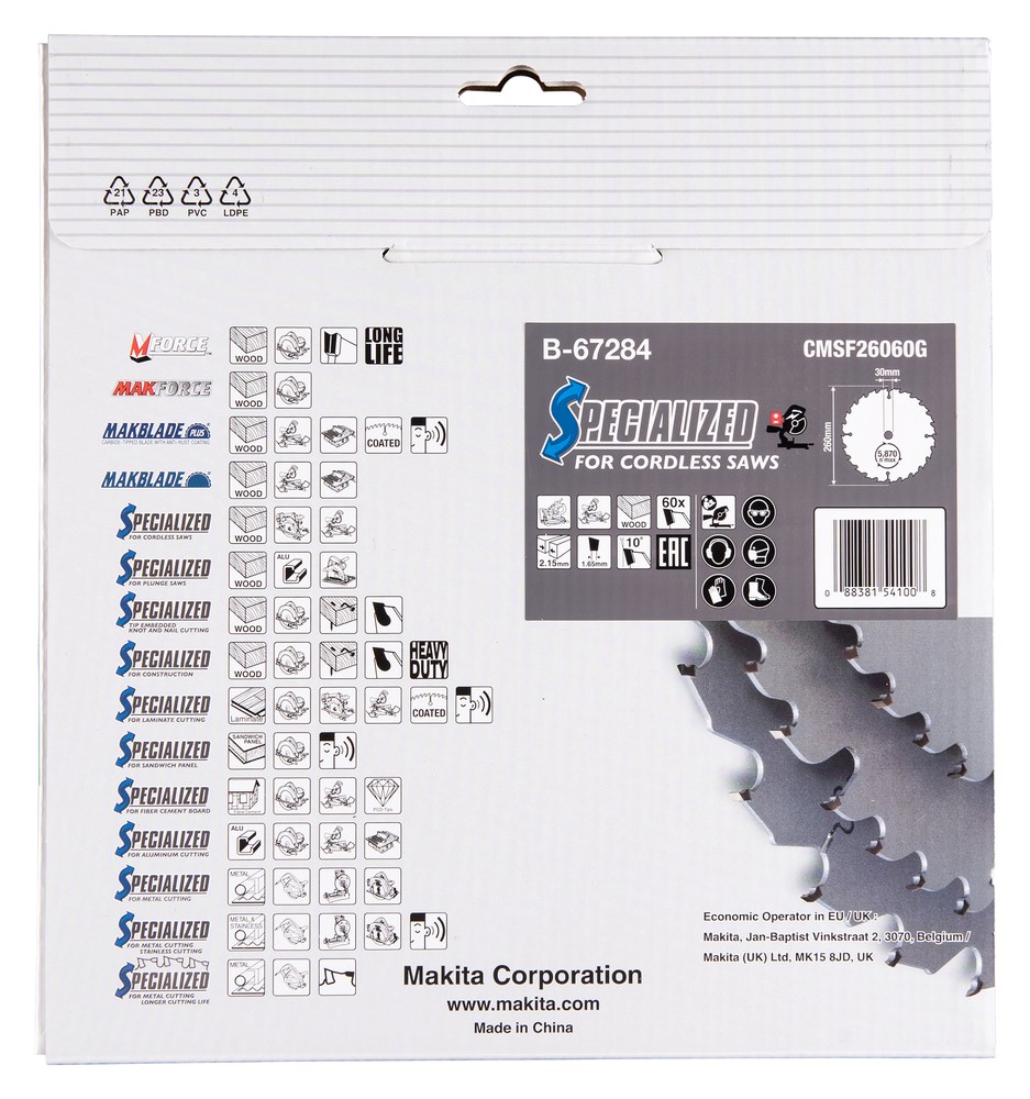 Contacteer onsMakita Artikelnummer: B-67284 CIRKELZAAGBLAD. EFFICUT TCT. 260 X 30 MM. 60 T