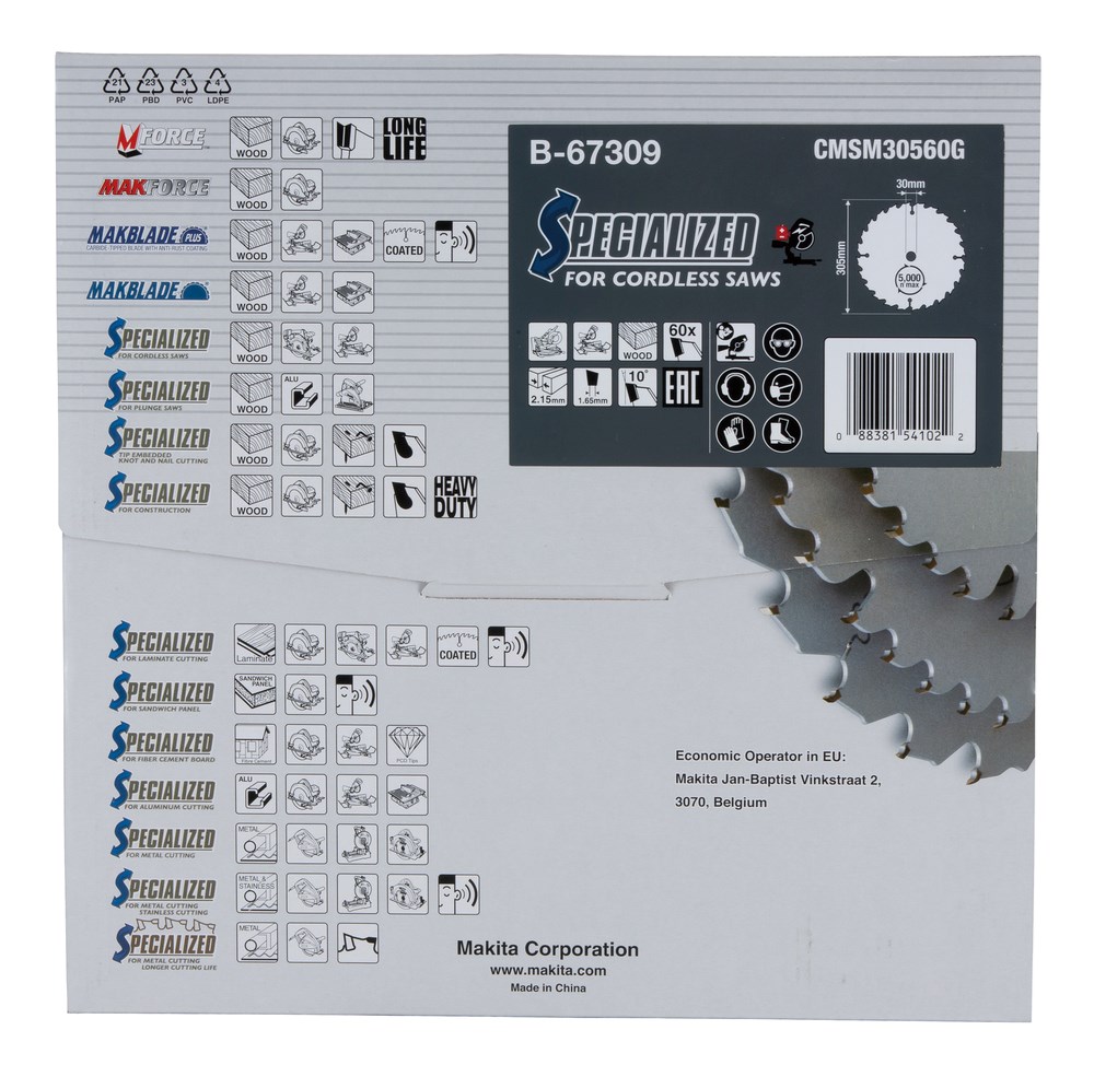 Makita Artikelnummer: B-67309 CIRKELZAAGBLAD. EFFICUT TCT. 305 X 30 MM. 60 T