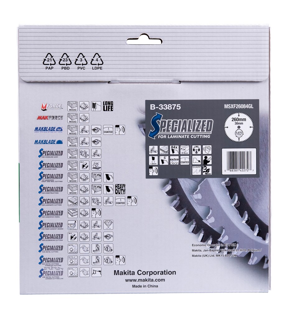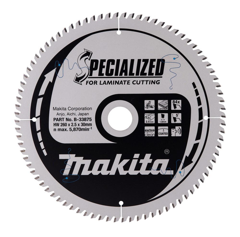 Contacteer onsMakita Artikelnummer: B-33875 CIRKELZAAGBLAD. SPECIALIZED TCT. 260 X 30 MM. 84 T