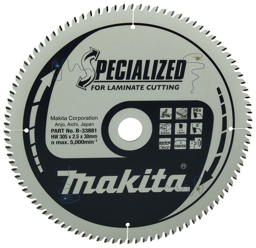 Contacteer onsMakita Artikelnummer: B-33881 CIRKELZAAGBLAD. SPECIALIZED TCT. 305 X 30 MM. 96 T