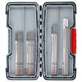 De PRO Wood and Metal Kitchen Fitter Set bestaat uit decoupeerzaagbladen van bi-metaal: ze hebben een vertanding van sneldraaistaal (HSS) die is verbonden met een body van koolstofstaal (HCS) voor sterkte en duurzaamheid. De set bevat 5 T 308 BFP-zaagbladen voor nauwkeurige en splintervrije sneden aan beide zijden van het werkstuk. De bladen hebben verschillende vormen en tandgeometrieën om ervoor te zorgen dat je gemakkelijk verschillende materialen kunt zagen.