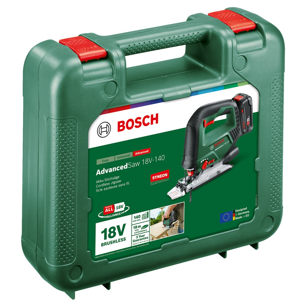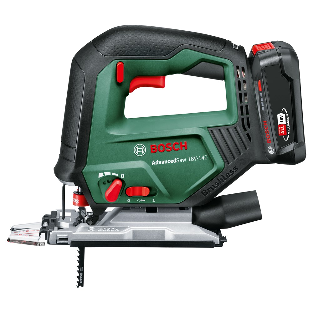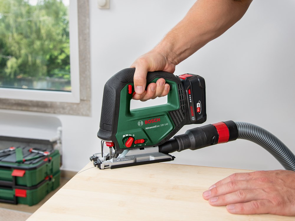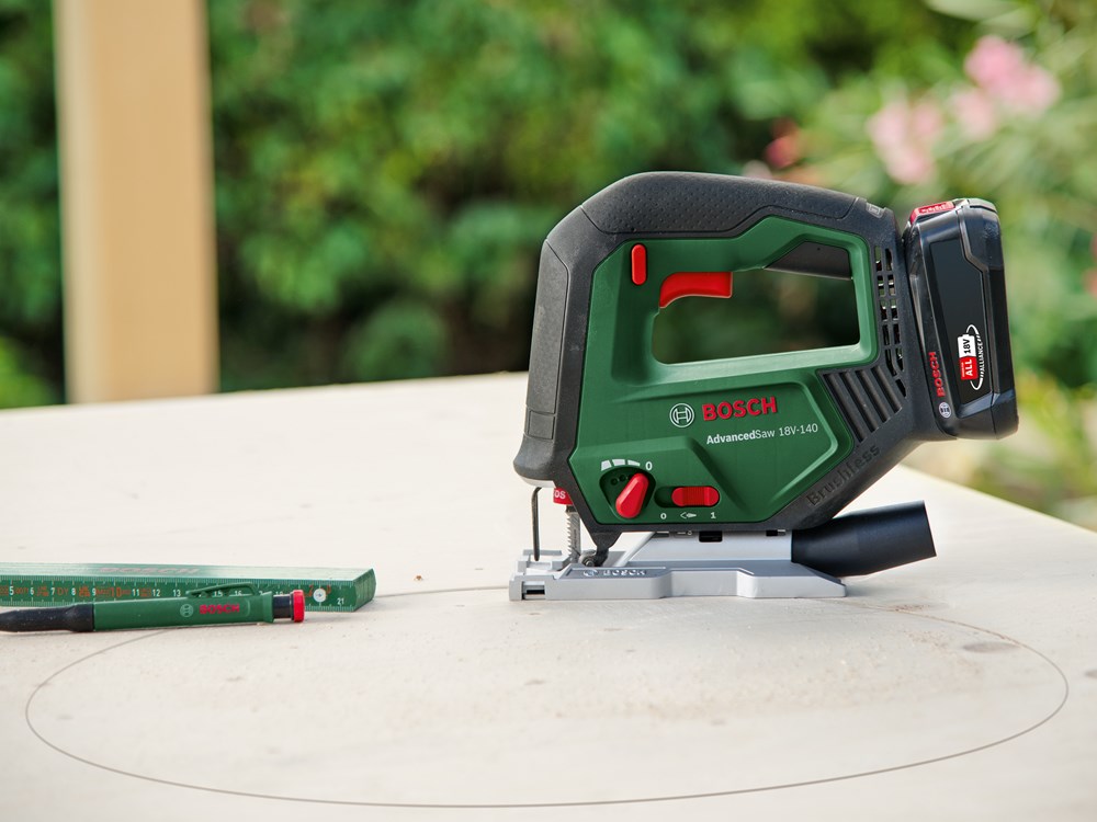 Vermogen als van een machine met snoer en snoerloze vrijheid voor grote zaagklussen bij het doe-het-zelven komen bij elkaar Bij het zagen van balken, het maken van meubels of het aanpakken van andere uitdagende projecten is de Bosch AdvancedSaw 18V-140 de hoogwaardige accudecoupeerzaag voor enthousiaste doe-het-zelvers. Dankzij een borstelloze motor combineert deze krachtige prestaties, vergelijkbaar met die van een zaagmachine met snoer, met een langere levensduur van de motor. Voor de beste resultaten staat deze allrounder bovenaan met een zaagdiepte van max. 140 mm en efficiënt recht zagen en bochten zagen in hout, aluminium, metaal en kunststof. Voor duidelijk zicht op de zaaglijn en een schonere werkomgeving heeft deze zaagmachine een aansluiting die tot wel 85 % van het stof en de spanen direct bij het zaagblad verwijdert. Een eenhandige SDS-interface maakt snel en probleemloos wisselen van zaagbladen eenvoudiger, voor ononderbroken doorwerken. De geïntegreerde Bosch Syneon Technology zorgt voor optimaal vermogen en maximale looptijd. Het gereedschap maakt deel uit van het 18V POWER FOR ALL-systeem. Eén accu kan worden gebruikt voor alle 18V POWER FOR ALL-gereedschappen.