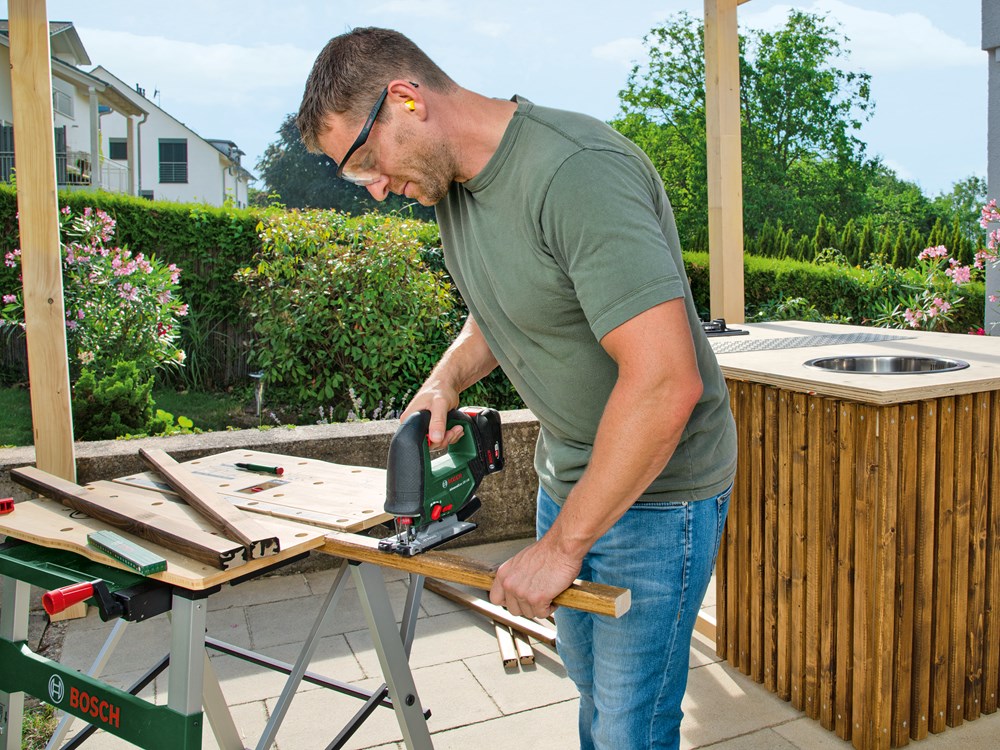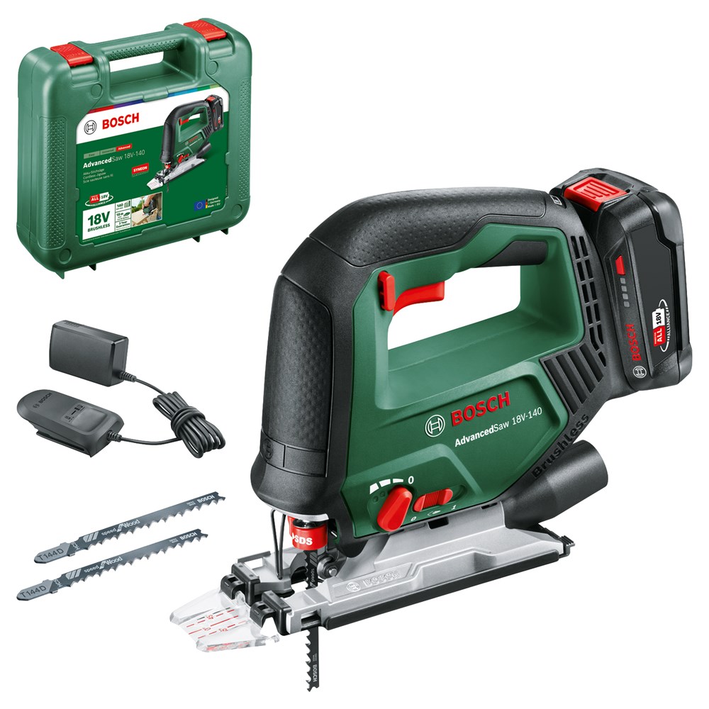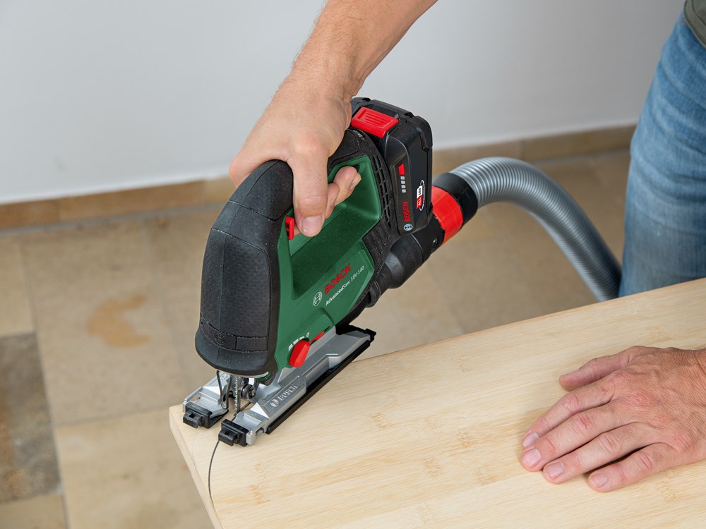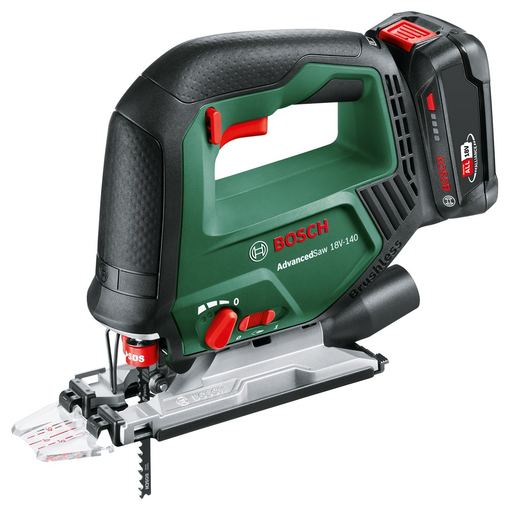 Vermogen als van een machine met snoer en snoerloze vrijheid voor grote zaagklussen bij het doe-het-zelven komen bij elkaar Bij het zagen van balken, het maken van meubels of het aanpakken van andere uitdagende projecten is de Bosch AdvancedSaw 18V-140 de hoogwaardige accudecoupeerzaag voor enthousiaste doe-het-zelvers. Dankzij een borstelloze motor combineert deze krachtige prestaties, vergelijkbaar met die van een zaagmachine met snoer, met een langere levensduur van de motor. Voor de beste resultaten staat deze allrounder bovenaan met een zaagdiepte van max. 140 mm en efficiënt recht zagen en bochten zagen in hout, aluminium, metaal en kunststof. Voor duidelijk zicht op de zaaglijn en een schonere werkomgeving heeft deze zaagmachine een aansluiting die tot wel 85 % van het stof en de spanen direct bij het zaagblad verwijdert. Een eenhandige SDS-interface maakt snel en probleemloos wisselen van zaagbladen eenvoudiger, voor ononderbroken doorwerken. De geïntegreerde Bosch Syneon Technology zorgt voor optimaal vermogen en maximale looptijd. Het gereedschap maakt deel uit van het 18V POWER FOR ALL-systeem. Eén accu kan worden gebruikt voor alle 18V POWER FOR ALL-gereedschappen.