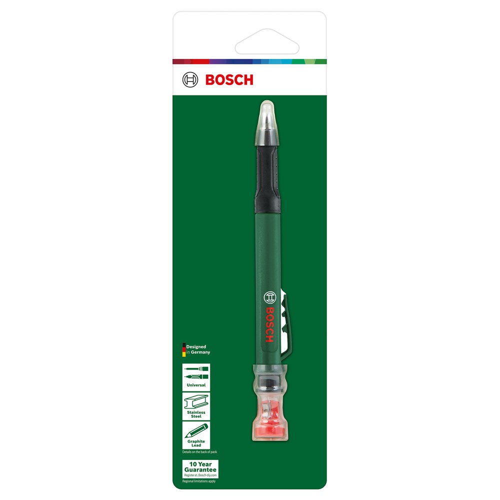 Doe-het-zelfliefhebbers zullen de hoge kwaliteit, flexibiliteit en effectiviteit van het Bosch diepgatmarkeerpotlood weten te waarderen. Het potlood heeft een afneembare dop, dus kan zowel worden gebruikt voor het markeren van vlakke oppervlakken als het bereiken van diepe gaten voor flexibel markeren, zodra de dop is verwijderd. Een superieure kern van grafietlood betekent dat dit potlood kan worden gebruikt voor het markeren van diverse materialen waaronder (bak)steen, beton, hout en papier. Het potlood heeft altijd een goede punt en is klaar voor gebruik dankzij een ingebouwde slijper. Op dit potlood kan jarenlang steeds weer worden vertrouwd dankzij de robuuste bouw en roestvrijstalen koker.