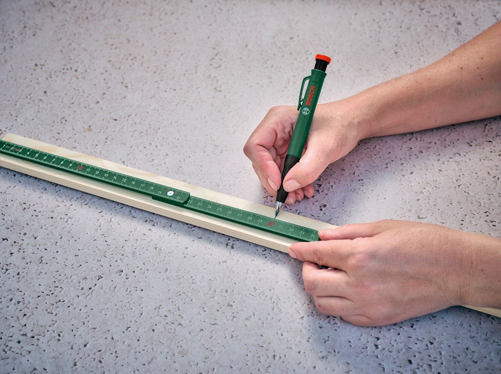 Voor precieze uitlijn- en montageklussen is het robuuste Bosch diepgatmarkeerpotlood een belangrijk hulpmiddel. Met de hoogwaardige kern van grafietlood en afneembare dop is dit ideaal voor het markeren van meerdere materialen, platte oppervlakken en bereiken van diepe gaten.