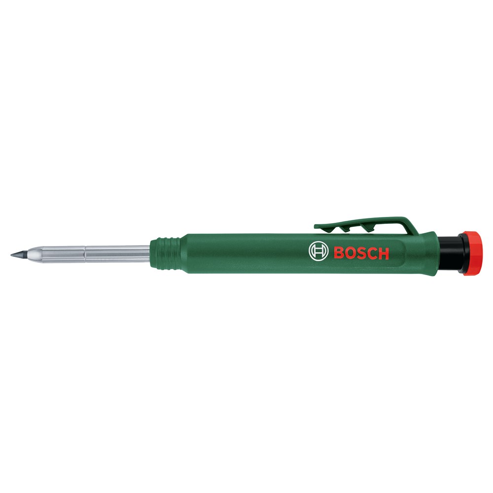 Voor precieze uitlijn- en montageklussen is het robuuste Bosch diepgatmarkeerpotlood een belangrijk hulpmiddel. Met de hoogwaardige kern van grafietlood en afneembare dop is dit ideaal voor het markeren van meerdere materialen, platte oppervlakken en bereiken van diepe gaten.