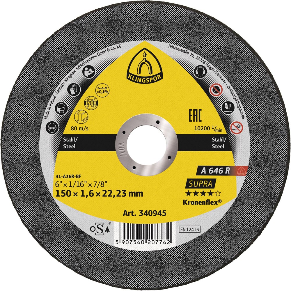 Contacteer onsVrij van ijzer, zwavel en chloor - Universeel toepasbaar op staal en RVS - Doorslijpschijf van zelfslijpend gecalcineerde aluminium oxide - Bijzonder hoge agressiviteit bij het doorslijpen van massief staal