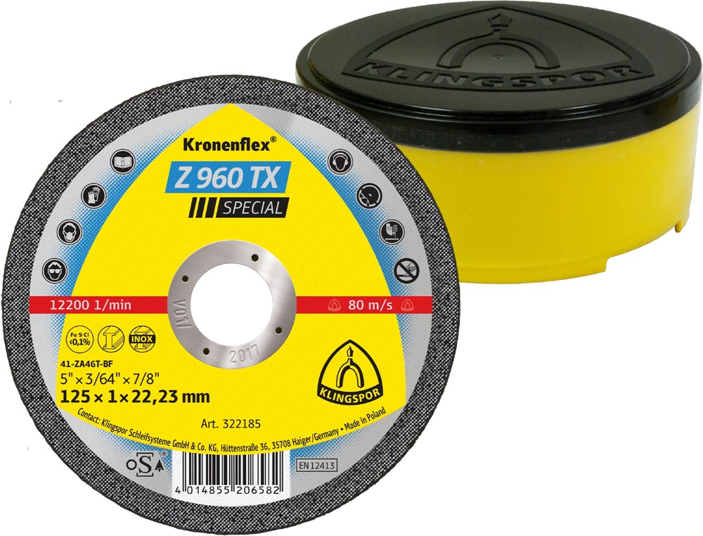 Contacteer onsVrij van ijzer, zwavel en chloor - Ideaal voor harde materialen zoals titanium en hoog-gelegeerd staal - Korte slijptijden en lange levensduur als gevolg van de zelfslijpende zirconia aluminiumoxide - Minimale braamvorming - Geringe thermische belasting - 25 stuks geleverd in de Kronenflex® box voor langdurig hoge prestaties en bescherming tegen vocht
