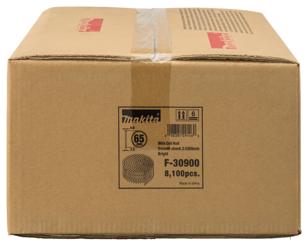 Contacteer onsMakita Artikelnummer: F-30900 DRAADGEBONDEN NAGELS OP ROL 2.5 X 65 MM. GLAD. 8100 STUKS