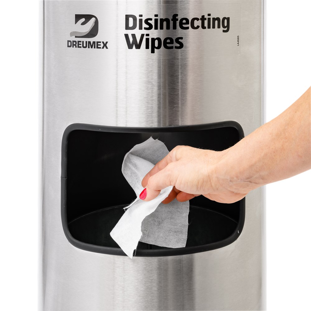 Contacteer onsDe Dreumex Stainless Steel Stand biedt een oplossing voor drukbezochte gebieden waar grote hoeveelheden doekjes worden gebruikt, zoals in de horeca, hotels, sportscholen en op de werkvloer. Een emmer met 800 Dreumex Disinfectant & Cleaning Wipes past perfect in de bovenkant van deze representatieve stand. Via die bovenkant kunt u makkelijk een doekje pakken, om deze vervolgens in de onderkant weg te gooien.