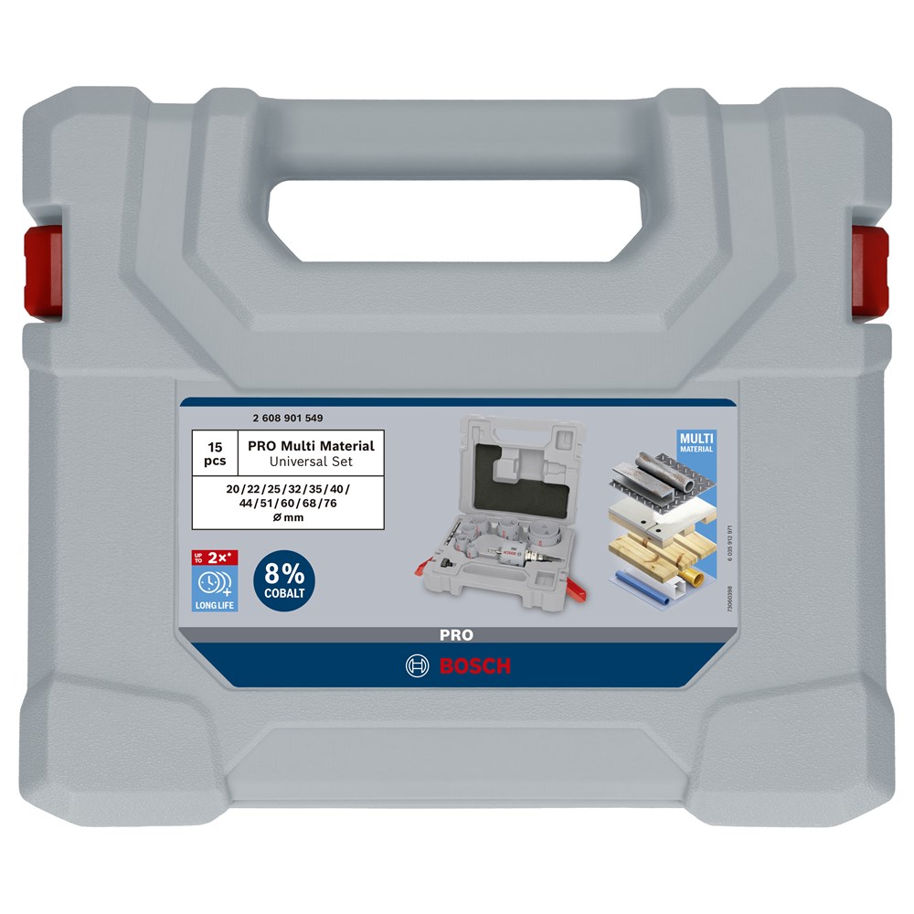 De PRO Multi Material gatzaag heeft een verbeterd tandontwerp voor snelle en gladde boorgaten en tanden van HSS-legering met een hoog kobaltgehalte voor een lange levensduur. Het biedt effectief gaten zagen in stalen bekleding en gipsplaten. Met de Q-Lock houder kun je gatzagen en centreerboren sneller wisselen en boorkernen gemakkelijker verwijderen.
