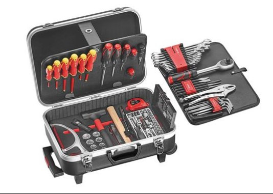 Contacteer onsZeer complete gereedschapskoffer van professionele kwaliteit. De koffer is verrijdbaar en daardoor gemakkelijk mee te nemen aan het uitschuifbare handvat. Ideaal dus voor elke klus, thuis of onderweg.