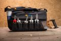 Contacteer onsZeer stevige tas met aluminium beugel als handvat. Met groot middenvak en rondom handige opbergmogelijkheden voor klein gereedschap. De bovenzijde is te verwijderen voor eenvoudige toegang.
