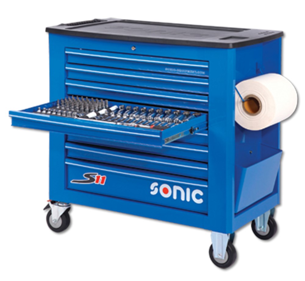 Contacteer onsSonic Artikelnummer: WGSO757518 S11 TROLLEY BLAUW 575DLG IN FOAM INLAY