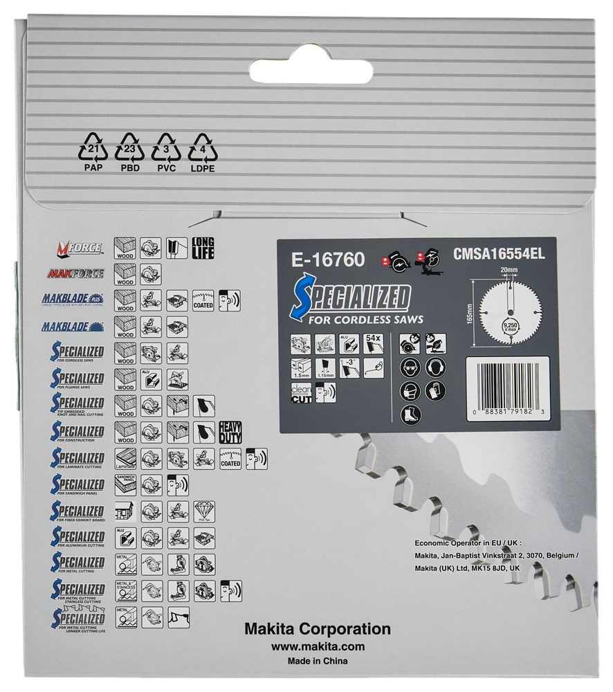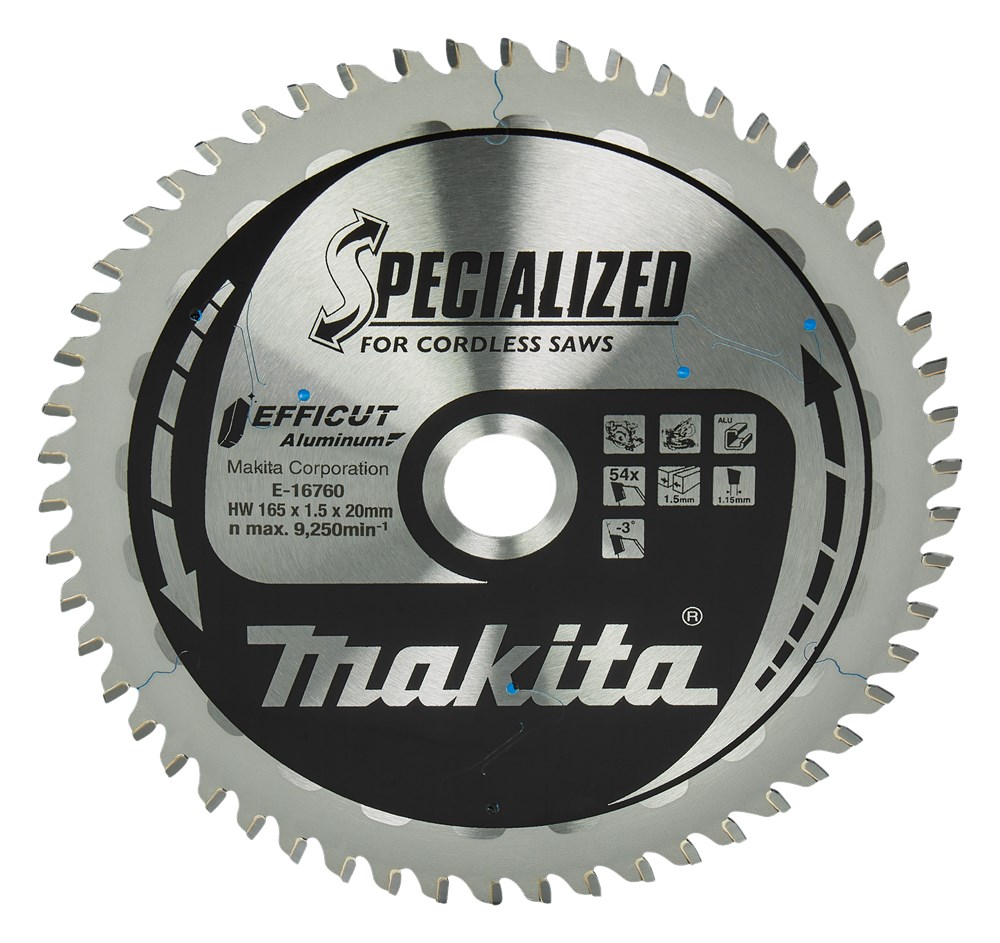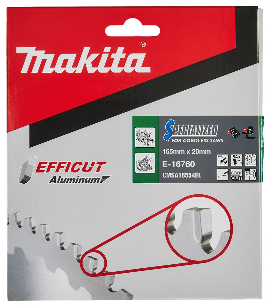 Contacteer onsMakita Artikelnummer: E-16760 CIRKELZAAGBLAD. EFFICUT TCT. 165 X 20 MM. 54 T