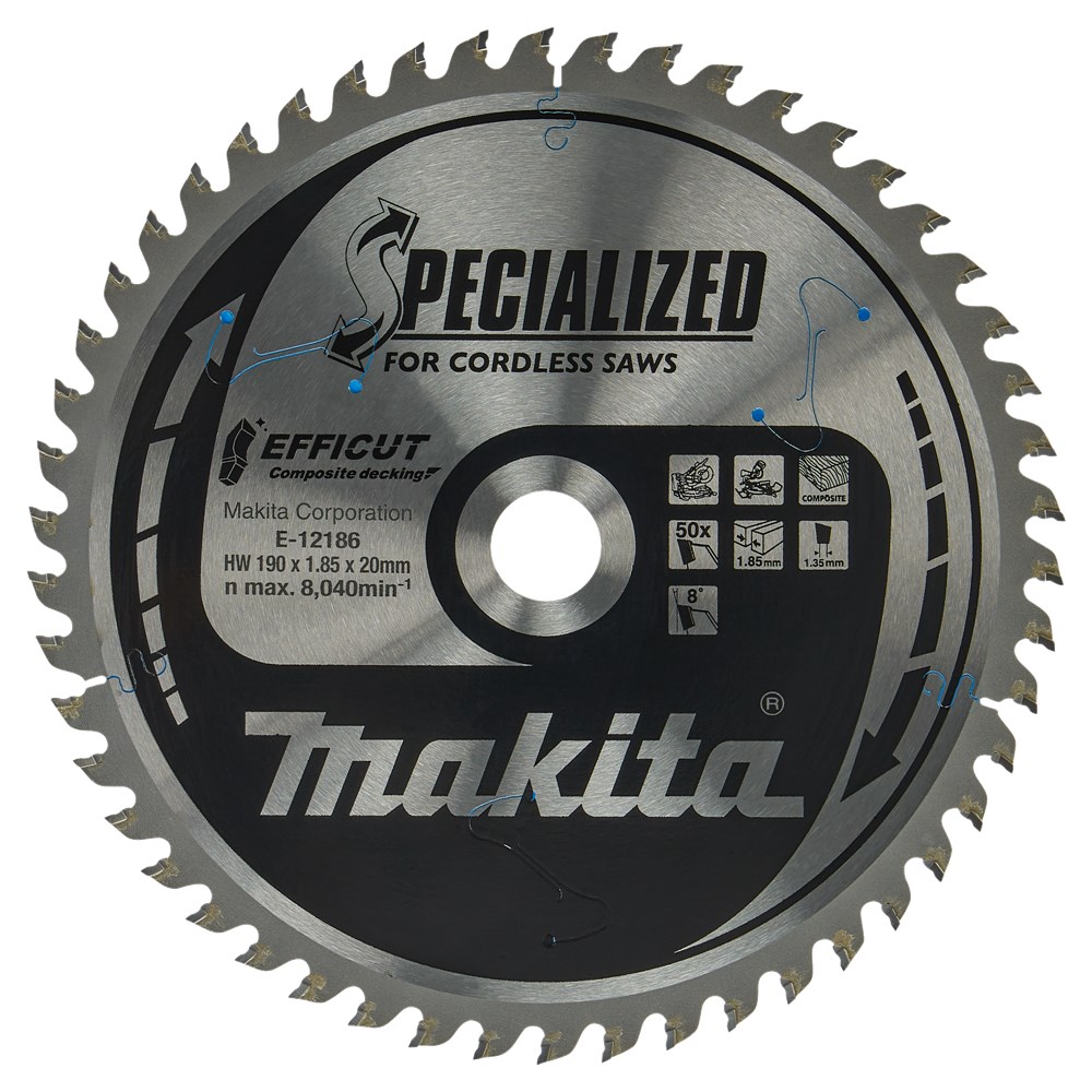 Contacteer onsMakita Artikelnummer: E-12251 CIRKELZAAGBLAD. EFFICUT TCT. 190 X 20 MM. 50 T