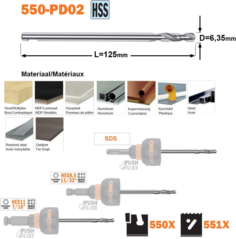 Contacteer onsCMT Artikelnummer: CT550-PD02 HSS BOOR PASSEND OP DE SNELWISSELHOUDER(S)