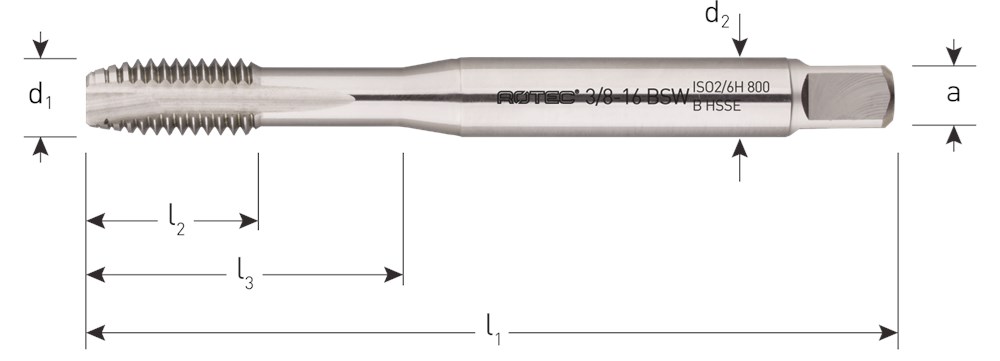HSS-E machinetappen, DIN 371, BSW, 55°, verdikte schacht, type B met schilaansnijding.