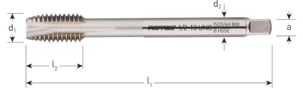 HSS-E machinetappen, DIN 376, dunne schacht, UNC, 60°, ISO2 (6H), type B met schilaansnijding.