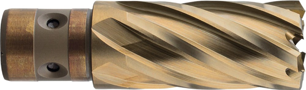 HSS-XE GOLD-LINE kernboren, volledig geslepen, voorzien van GOLD-TECH-oppervlaktebehandeling. Trapsgewijs geharde kernboor met zeer harde (tot wel 68 HRc) en slijtvaste tanden terwijl het boorlichaam zelf taai en sterk blijft en daardoor toepassingen met hoge koppeloverdrachten mogelijk maakt.FEIN / QUICK-IN 18mm opname.
