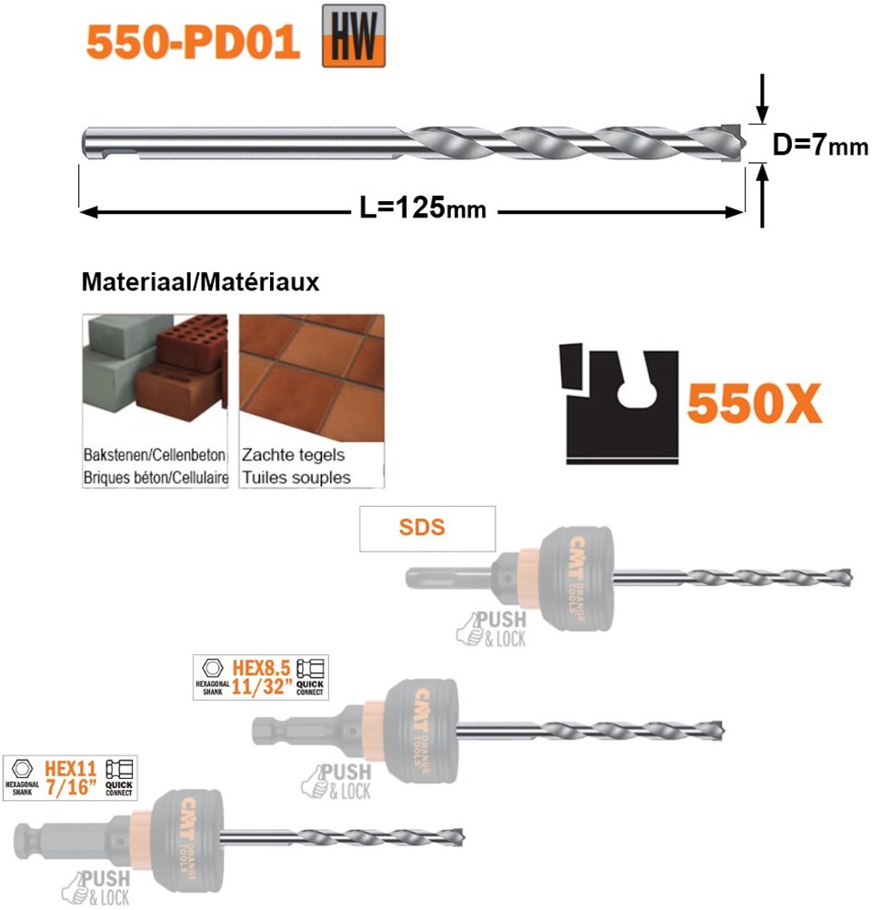 Contacteer onsCMT Artikelnummer: CT550-PD01 HW BOOR PASSEND OP DE SNELWISSELHOUDER(S)