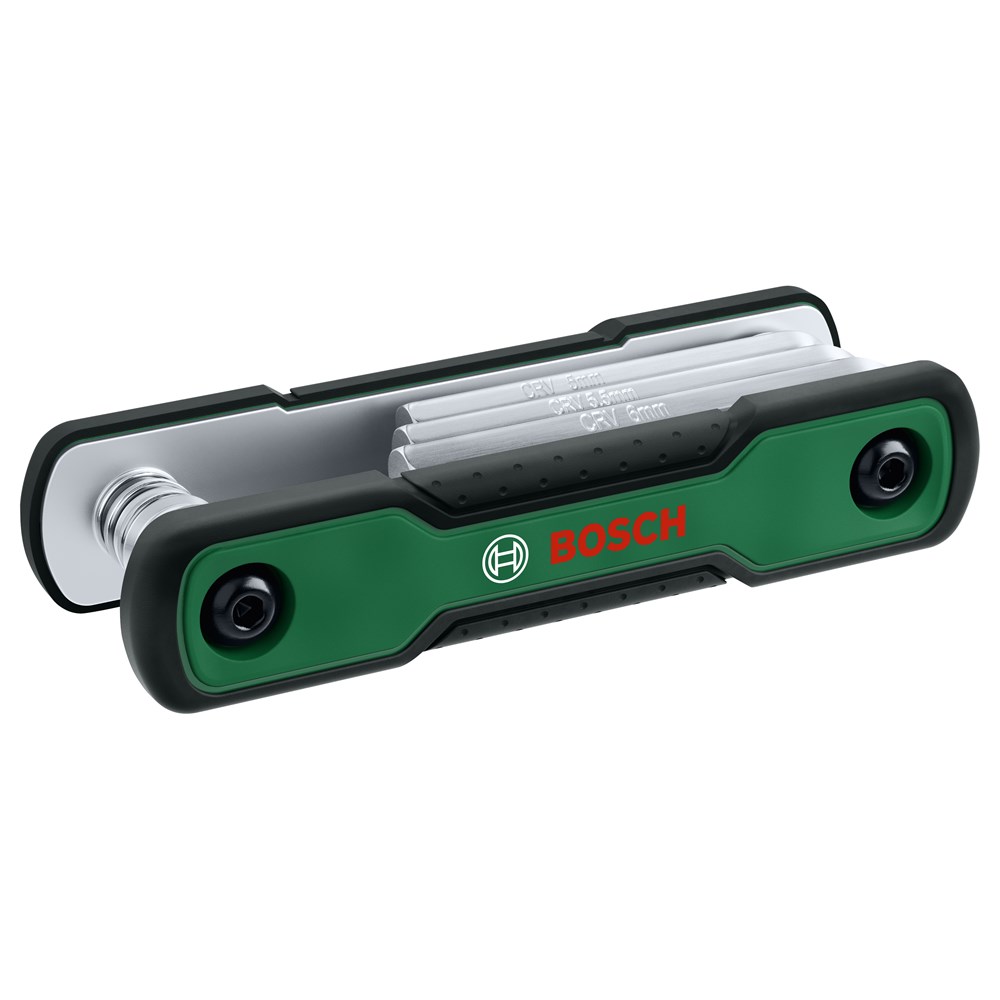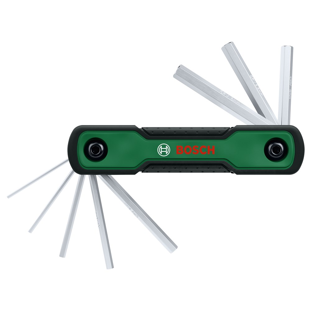 Met de 8-in-1 inklapbare inbussleutelset van Bosch zijn montageklussen thuis of onderweg eenvoudig. Dit handige gereedschap bevat 8 verschillende inbussleutels (HEX1.5, HEX2, HEX2.5, HEX3, HEX4, HEX5, HEX5.5, HEX6) voor een verscheidenheid aan doe-het-zelfklussen. Het gereedschap is gemaakt van hoogwaardig chroomvanadium voor duurzaamheid. Het past gemakkelijk in een broekzak of rugzak en is voorzien van een tweecomponenten-handgreep met softgrip voor ultiem comfort.