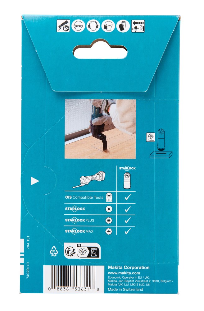 Multitoolbladen voor multitools met Starlock-bevestiging. Ook geschikt voor multitools met Starlock Plus- en Starlock Max-bevestiging. Ontworpen voor het op lengte zagen, het maken van uitsparingen en invalzaagsneden. Geschikt voor zacht en hardhout en metalen zoals hout met spijkers en zelftappende schroeven. Ook geschikt voor materialen zoals epoxy en glasvezel. De witte accentkleur maakt het gemakkelijker om de bladen te onderscheiden van bladen die voor andere materialen zijn bedoeld. De ruime keuze aan accessoires voor multitools biedt bladen met diverse breedtes, vormen en voor diverse materialen. De juiste set accessoires maakt het gereedschap efficiënt en veilig om mee te werken.