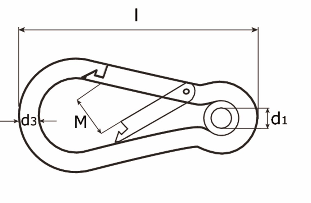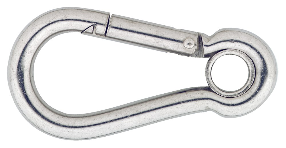 Contacteer onsDX Artikelnummer: 8000.024.8I05 KARABIJNHAAK MET KOUS C-DIN 5299 / 050X05 MM / RVS AISI 316