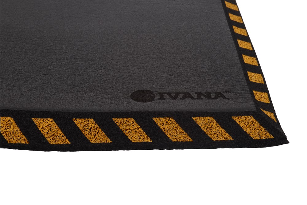 Met een formaat van 36 x 53 cm en een dikte van 25 mm is de mat compact maar effectief. Hij is licht van gewicht, maar stevig genoeg voor intensief gebruik. De antisliplaag geeft goede grip op zowel natte als droge oppervlakken en voorkomt uitglijden. De schuine randen met gele waarschuwingsstrepen verkleinen de kans op struikelen en zorgen voor extra zichtbaarheid.
