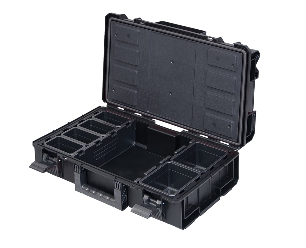 De 200 pro is onderdeel van het modulaire koffersysteem 1. Een sterke koffer van 15,5 liter, kan tot wel 120 KG dragen, voor maximaal 50 KG aan inhoud. Stof- en waterdicht met sterke hefboomsluiting. Inclusief uitneembare opbergbakjes, en voorzien van extra opbergruimte in de deksel.