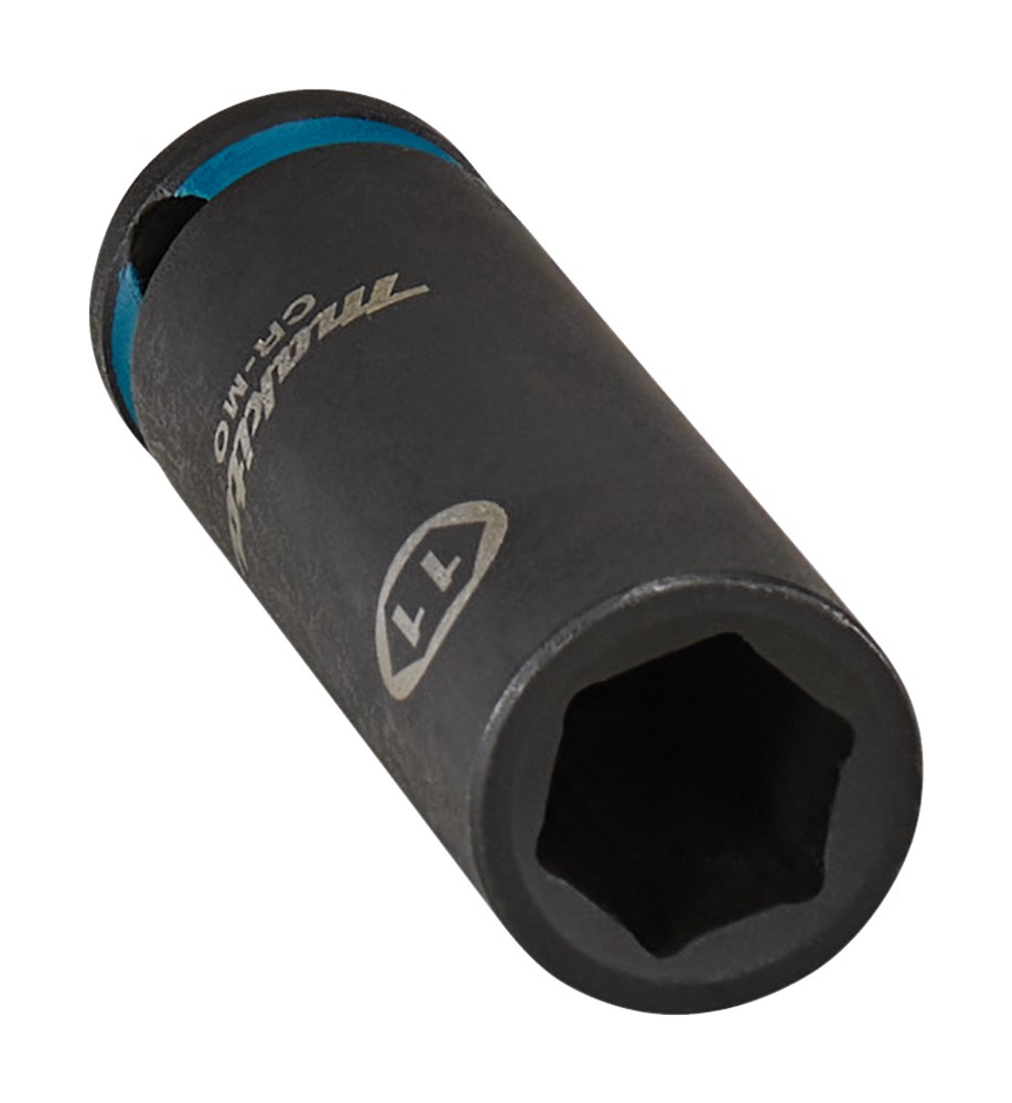 Contacteer onsMakita Chroom-Molybdeem krachtdoppen in verschillende diameters en aansluitingen. Losse borgpennen en O-ringen staan in de categorie Borgpennen en O-ringen krachtdoppen. Extra lange Makita 11mm krachtdop uit de Impact Black serie, met 3/8" VK aansluiting met een werklengte van 63mm; perfect voor lastig bereikbare plaatsen. Deze dop is vervaardigd uit Chroom-Molybdeen, heeft een nauwkeurige passing en een lange levensduur. Voorzien van een Makita-teal gekleurde band en maataanduiding.