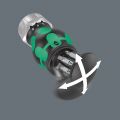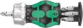Uiterst compacte bit-handhouder met extreem korte bit-opname voor lastig bereikbare plekken. Het ratelmechanisme heeft een fijne vertanding voor een uiterst kleine terughaalhoek. Eenvoudig te bedienen omschakelring (rechts, vast, links). Inclusief 6 extreem harde universele bits, die zich in een bitmagazijn in de handgreep bevinden. De sterke permanente magneet in de bit-opname zorgt voor een veilige positionering van de bits. De Kraftform 2-componenten handgreep met geïntegreerde harde en zachte delen zorgt voor een goede grip en maakt nauwkeurig werken mogelijk.