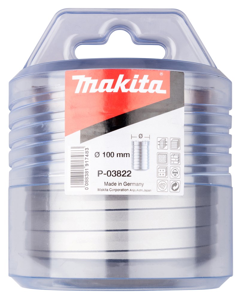 Makita kroonboor met vaste SDS-MAX aansluiting, voor gebruik in beton, metselwerk, natuursteen en kalkzandsteen. Te gebruiken in combinatie met boorhamers van 5kg of meer.