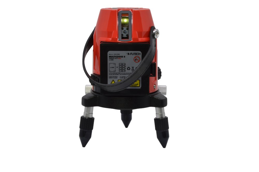Contacteer onsKruislijnlaser met 1 rode horizontale lijn en 4 verticale lijnen (= schietlood boven en onder + 4 hoeken van 90°). Elke lijn heeft 1 laserpuntje voor een betere zichtbaarheid, zelfs in een omgeving met veel licht of buiten. Pendelnivellering met 1,5mm/10m nauwkeurigheid en bereik van 50m met ontvanger (optie). Fijnregeling draait laser precies rond schietlood. Netstroomadapter zorgt voor onbeperkte autonomie.