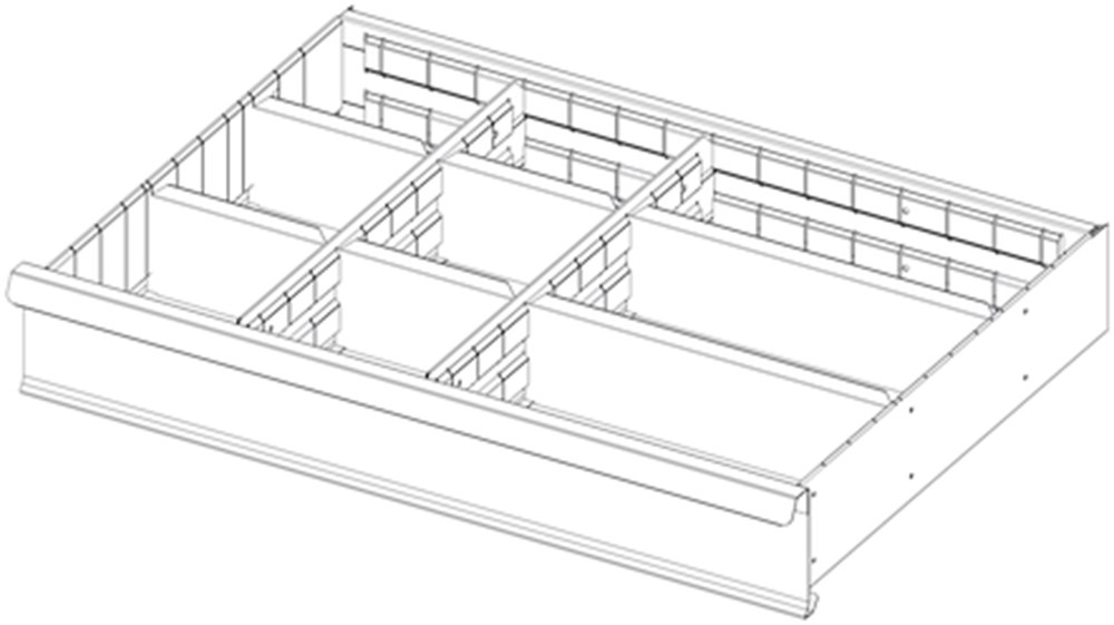 Set van 8 onderverdelingen voor laden van 125 mm voor ladekasten