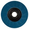 Contacteer onsLamellenschuurschijven zijn voorzien van lamellen bestaande uit een rug van vezelstof en korrels. Deze zijn geplaatst op een schijf met een rug van glasvezels. Doordat de schijf opgebouwd is uit lamellen is deze veerkrachtiger dan een schuurschijf en minder agressief voor het te bewerken materiaal. Bijzonder geschikt voor het schuren van lasnaden. Soorten korrel: Aluminiumoxide [A]: Zeer geschikt voor staal. Geschikt voor aluminium, non-ferro metalen en kunststoffen. Zirkoniumoxide [Z]: Zeer geschikt voor RVS. Geschikt voor staal, aluminium en non-ferro metalen. Keramisch aluminiumoxide [Ce]: Zeer geschikt voor RVS. Geschikt voor staal, aluminium en non-ferro metalen. Siliciumcarbide [S]: Zeer geschikt voor mortel en steen. Vom van de schijf: Vlakke schijven gebruik je voor het vlakschuren van oppervlakken. Plaatst deze onder een hoek van 0-15° op het materiaal voor een optimaal gebruik. Schuine schijven gebruik je voor het schuren van lasnaden, slijpen van vellingkanten en ontbramen. Plaats deze onder een hoek van 10-25° op het materiaal voor een optimaal gebruik. Korrels: 36/40: Lasnaadbewerking en vellingkanten. 60: Lasnaadbewerking, vellingkanten, ontbramen en vlakschuren. 80: Ontbramen en vlakschuren. 120: Vlakschuren. Makita zirkonium-aluminiumoxide lamellenschuurschijf schuin met glasvezel versterkte rug. Diameter 125mm met korrel 120. Zeer geschikt voor: metaal. Geschikt voor: RVS en non-ferro metalen. Voor intensiever gebruik raden wij lamellenschijf B-22698 aan.
