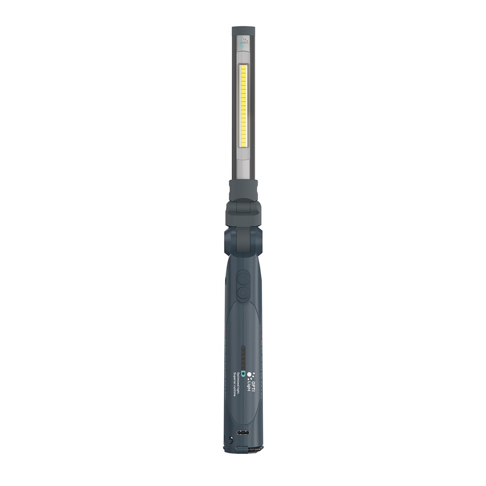 OPTILight Scangrip handlamp Slim wordt aangedreven door 20 efficiënte multi-LED's en biedt een krachtige, instelbare lichtopbrengst tot 500 lumen. Het handige lampje aan de bovenzijde voorziet in een lineaire lichtbundel van 150 lumen. Ideaal bij het uitvoeren van inspectiewerkzaamheden. De OPTI Light-instelling levert de gewenste verlichtingssterkte (lx) die past bij de werksituatie en zorgt voor optimaal licht en een lange bedrijfstijd. Met één simpele aanraking ben je verzekerd van geoptimaliseerd licht en een optimale brandtijd. Deze handlamp levert een constante uitvoer van lumen gemeten volgens de standaard Europese richtlijnen zoals vastgelegd in EN 13032-1.