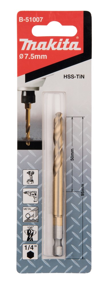 Contacteer onsMakita Artikelnummer: B-51007 METAALBOOR HSS-TIN 7.5 MM. 1/4