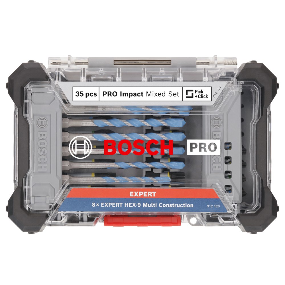 De PRO Impact Mixed Set is een geweldige keuze voor interieurmonteurs en installateurs die betrouwbare schroefbits en boren nodig hebben. De schroefbits zijn voorzien van een torsiezone, die de koppelspanning aan de punt van de bits absorbeert en ervoor zorgt dat ze niet breken. De bits hebben kleurgecodeerde ringen die het koptype aangeven en lasermarkeringen om je te helpen de bit te kiezen die je nodig hebt. De EXPERT HEX-9 Multi Construction boren hebben slijtvaste snijkanten en hardmetalen punten voor extra hardheid. De spiralen verwijderen spanen efficiënt, waardoor de levensduur van de boren wordt verlengd. De set wordt geleverd in een stevige koffer en is gerangschikt in houders waarmee je je eigen gereedschapskist kunt bouwen.